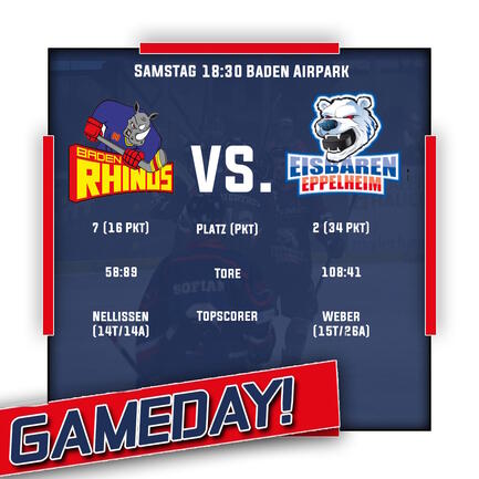 Dabei sollte man auch die Baden Rhinos nicht unterschätzen, so einfach wie es beim 15:0 Heimsieg ausgesehen hat, werden es die Gastgeber den Eisbären auf heimischem Eis nicht machen. Aus den letzten 6 Spielen konnte der ESC 3 Siege für sich verbuchen und mit dem Ex-Regionalliga-Spieler Nellissen haben die Rhinos auch einen Topscorer in den eigenen Reihen, den es in den Griff zu bekommen gilt.